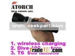 WP2011-H is produced by Atorch Company; it is a kind of diving flashlight, specially designed for the people who are crazy with diving. With its outstanding performance, it is widely used in personal diving and camping trip, underwater R&D seabed hunting and so on. What’s more, it is a real revolutionary breakthrough technology and milestone in flashlight by making use of a new innovation for battery charged wireless system.